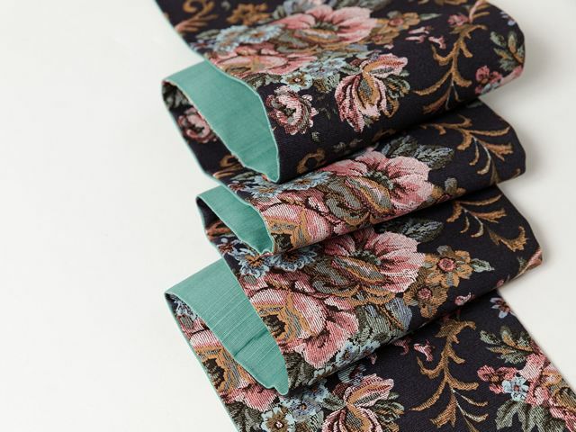 クラシカルなテイストのゴブラン織り調の半幅帯。