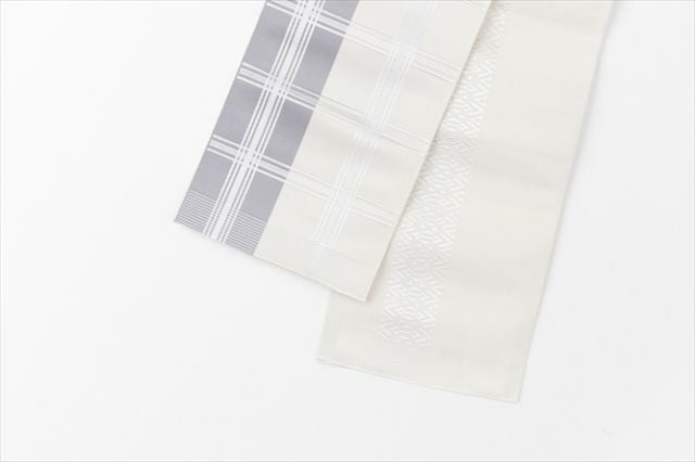 ホワイトをベースに、シルバーグレーでシャープなアクセントを効かせたモダンな博多帯が仲間入り。シンプルだけど大胆で、上品だけどカッコイイ。オシャレをブラッシュアップさせるエッセンスがギュッと詰まった、マストバイ候補必至の1本です。