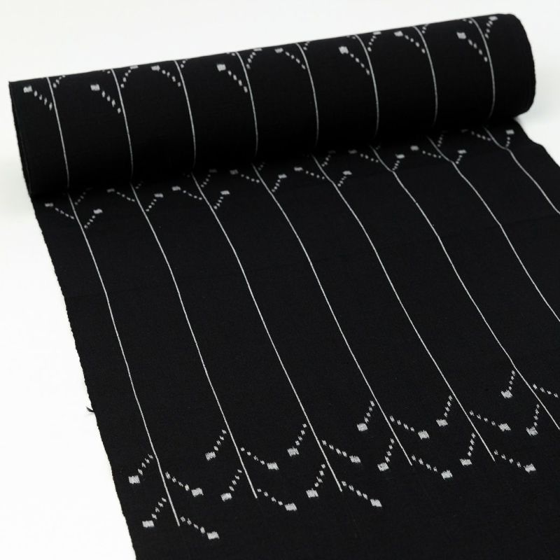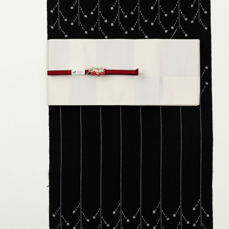 スラブ糸を使っているので、ぺったりとした生地感ではなく奥行きを感じさせてくれます。半幅帯や兵児帯などのナチュラルなコーディネートで、肩の力を抜いて楽しめる久留米絣です。
