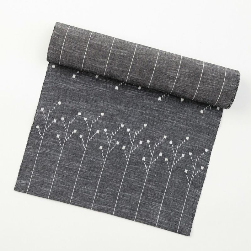 【雪夜】グレーの糸ではなく、黒と白の糸を織重ねているため、地色は白がほんのり浮き上がり、かすれたような表情が愛らしいカラーです。