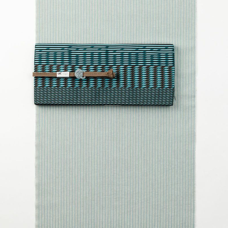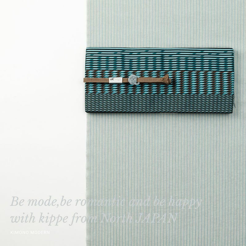 <米沢木綿KIPPE>極上の肌触りとスーツLIKEなカラフルSTRIPE-Gray mint (米沢産・綿100%・別送品)