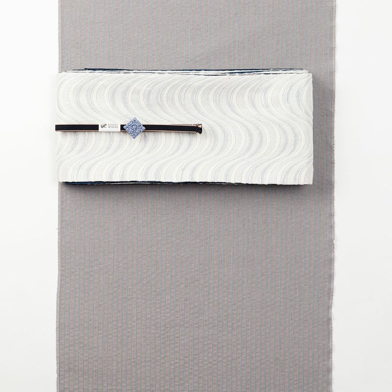 スモーキーでミステリアスな藤色とブルーのストライプのコントラストがモダンでスタイリッシュな印象。