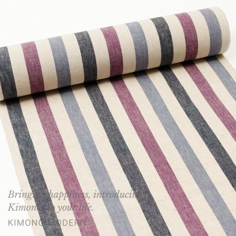 <伊勢木綿>綿麻-MODERN GIRLS-Stripe(別送品|綿50%・麻50%)