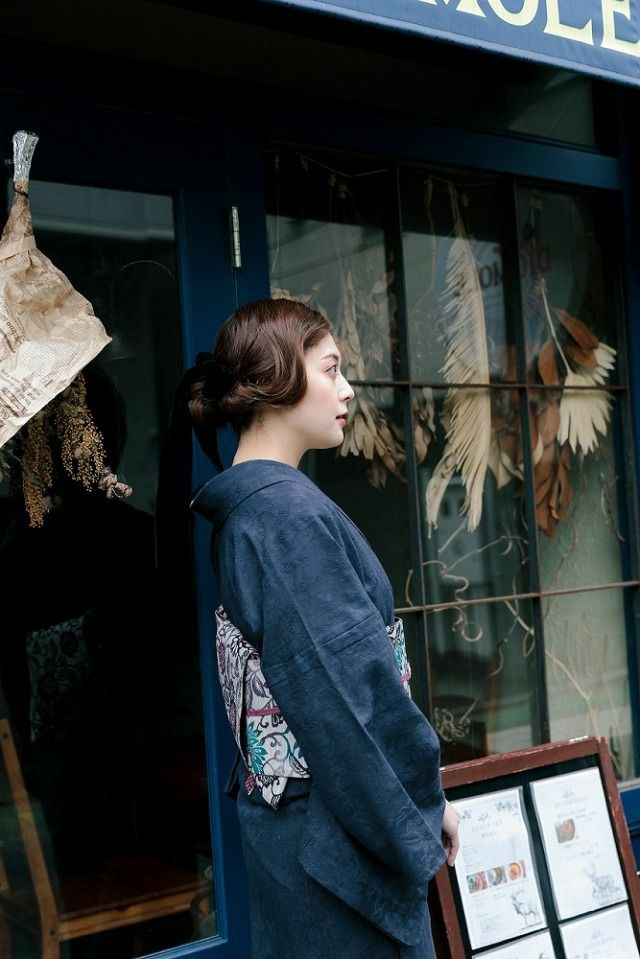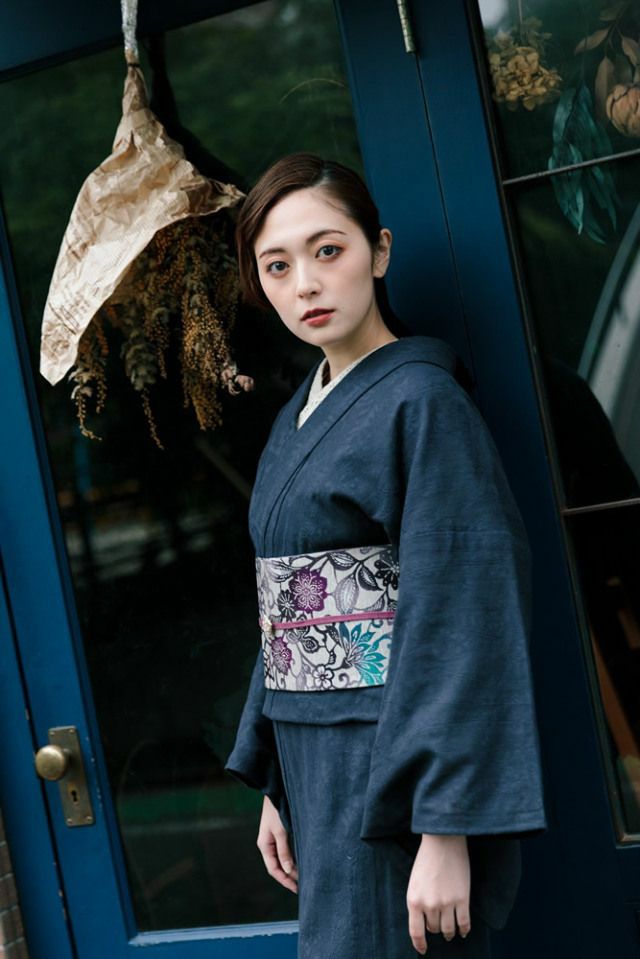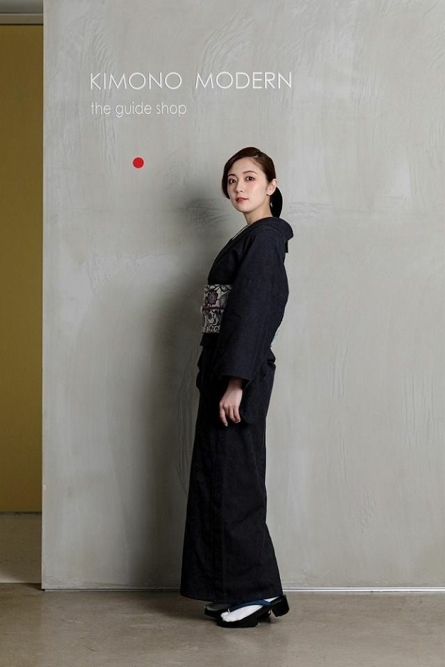 色はちょっぴり紫が入ったような紺色。シックな深みのある色彩で、真面目な紺とも違う、大人の色気漂う1着です。