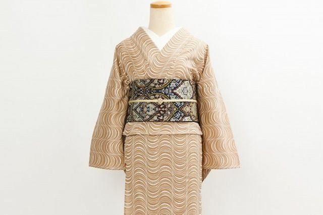 個性的な色柄ですが、帯や小物は着物の色から1色選べば統一感が出せるので、コーディネートのハードルは意外と低め。ポイントカラーのチョイス次第で、さまざまなスタイルにチャレンジできます。