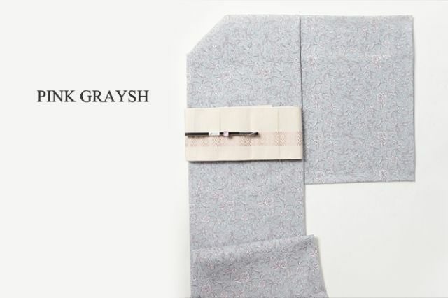 エアリーなグレーは夏でも着こなしやすいモノトーンカラー。ほんのり色づくピンクと繊細な花柄の愛らしさが見事に調和し、控えめながらもセンスの良さを感じさせます。