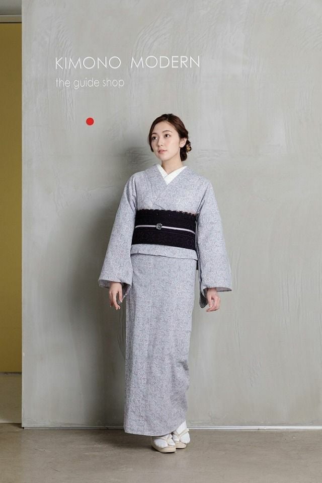 ディテールが共鳴しあう密度の高い柄が、フェミニンさだけでなく上質感をも演出してくれます。夏着物としてはもちろん、浴衣として着るのもGood。