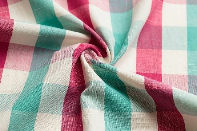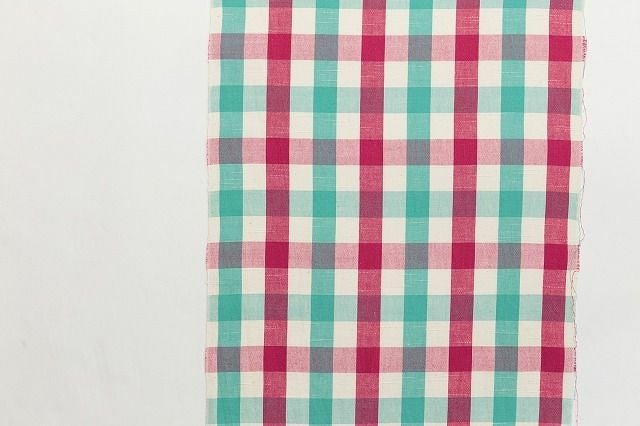 アイボリー地にグリーン・赤の格子