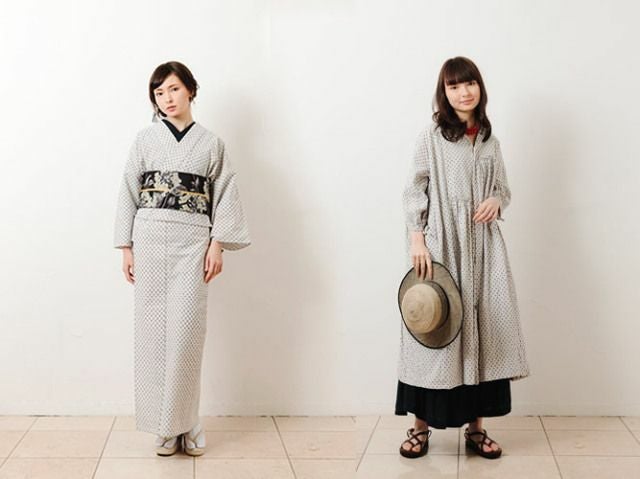 同一の生地で着物とワンピースの2パターンをご用意。和と洋をシームレスに楽しめる、新しい久留米絣をぜひご堪能ください。