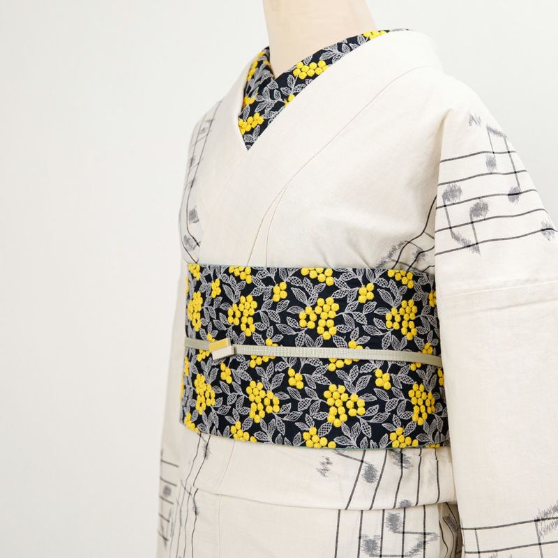 白地の着物というと、ちょっと抵抗がある方も多いかと思いますが、ブラウスなどにつかう白生地と違って、織物の白はまたちょっと風合いが違うので別物、と考えた方がよいかも。気になる透け感も、着物の下には長襦袢や裾除けをを着るわけだから心配ご無用です。