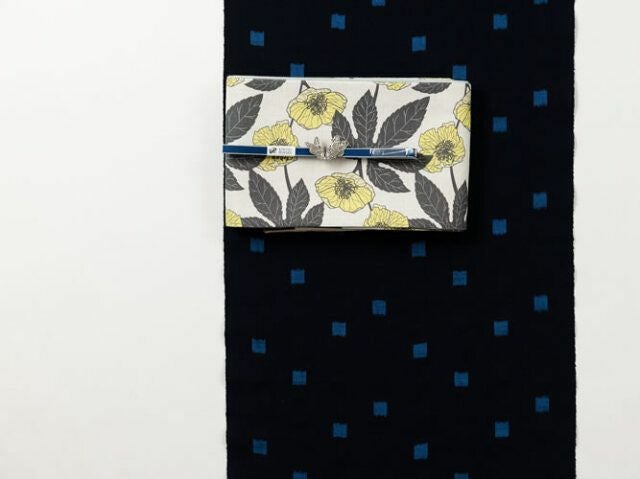 深いネイビーブルーの地にコバルトブルーのキューブ柄が浮かんだ、どこか幻想的な雰囲気を持つ久留米絣。さり気ない色と柄の調和がコーディネートに奥行きを生み出し、知性と凛々しさを感じる着姿を叶えてくれます。