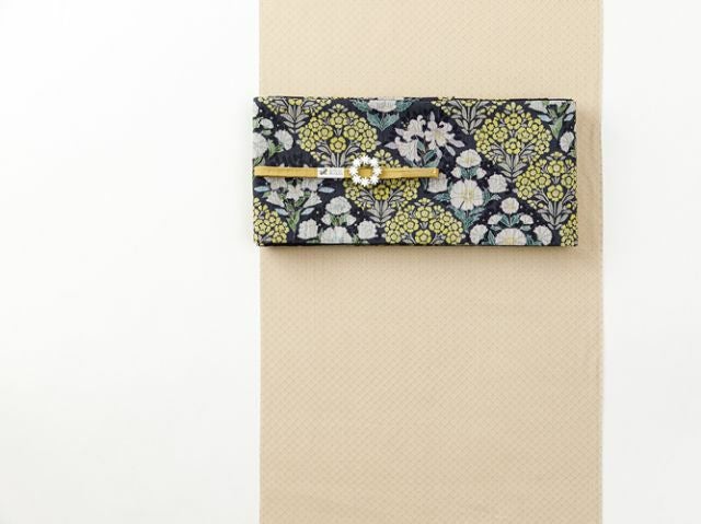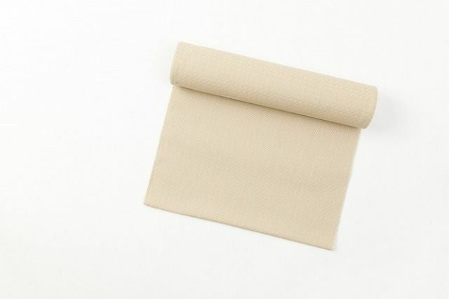 コーディネートしやすく、肌なじみもいいベージュ系カラーで、使い勝手は抜群。繊細なダイヤ柄の地紋がリズム感を生み出し、一色染めの着物でもしっかりメリハリのある装いを叶えてくれます。