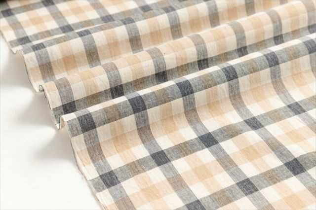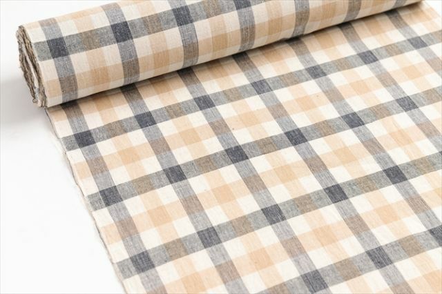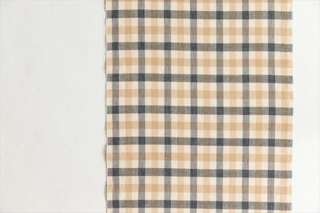 <伊勢木綿>綿麻キモノー茶色格子(綿100%・反/S/M/L/誂)