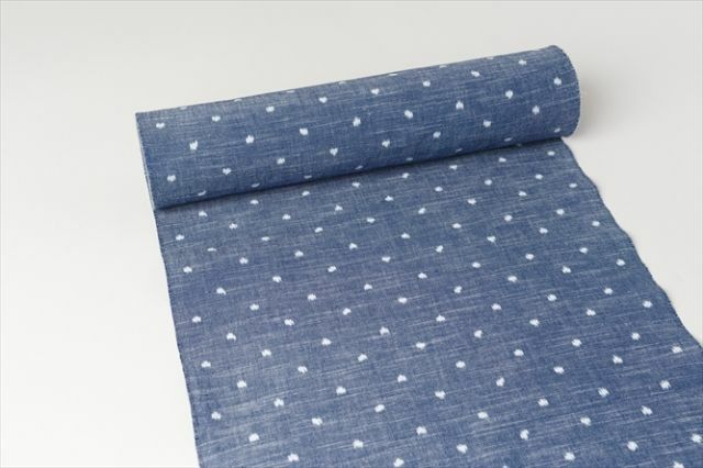 デニムライクな生地色×ドット柄の久留米絣