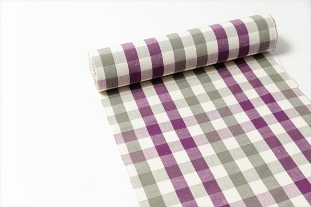 キリッと粋な紫が効いていて、 けれど、グレイがそれを程よく中和していて。 絶妙な配色バランスのモダンな格子柄。以前、KIMONO MODERNでも発売して大好評だったこの色彩のシリーズ。今回は、同じ色彩の別パターンの格子柄をお届けします。