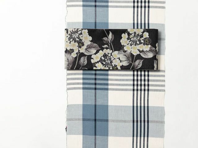 印象的に一筋加えられた、グレイッシュなブルーが表情を豊かにしてくれている伊勢木綿。モノトーンをベースにした変わり格子柄だから、洗練されたテイストに仕上がってしまうのがうれしいポイント。