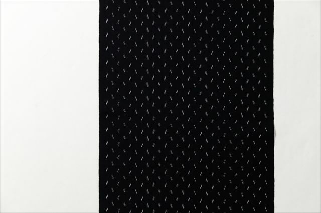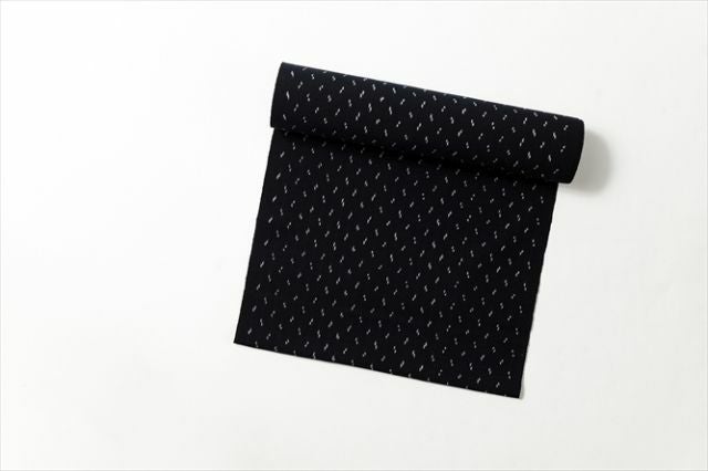黒い着物というと、クールなイメージだったり、ちょっと重たい雰囲気があったり。けれど、この反物にはそういう物を一切感じさせません。余計な要素を排除した、極限のシンプル。小さなドットで構成された、濃密な世界。