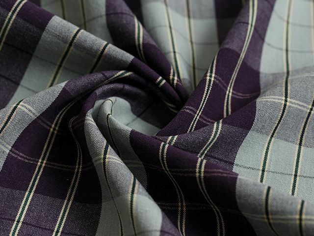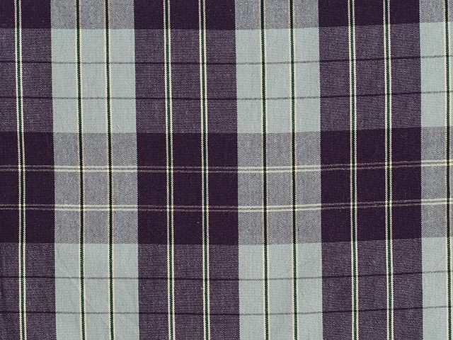 葡萄色の大胆なマドラス風チェックは、粋にモダンに着こなしたい大人きもの女子のための色遣い。うっすらと横にも織り込まれた紫色のラインが着姿を引き締めてくれます。美術鑑賞や習い事など、普段の生活に年齢を問わずお楽しみいただけます。