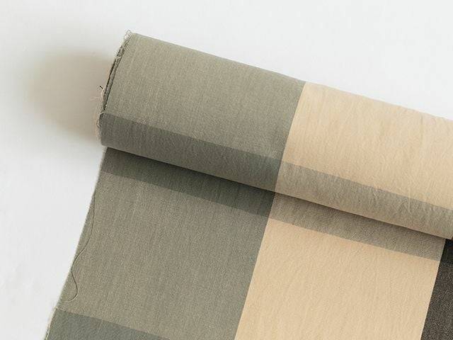 そこに、深緑グレイのワントーンで表現された、大判格子は、大胆だけど多色使いされていないので、大胆ながらもシックな雰囲気に仕上がりそうです。モードな大人、ちょっとこだわりのあるお洒落を楽しみたいあなたへお届けいたします。