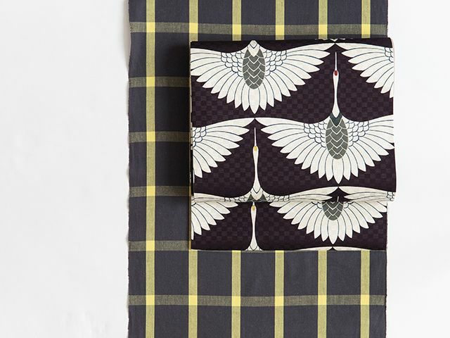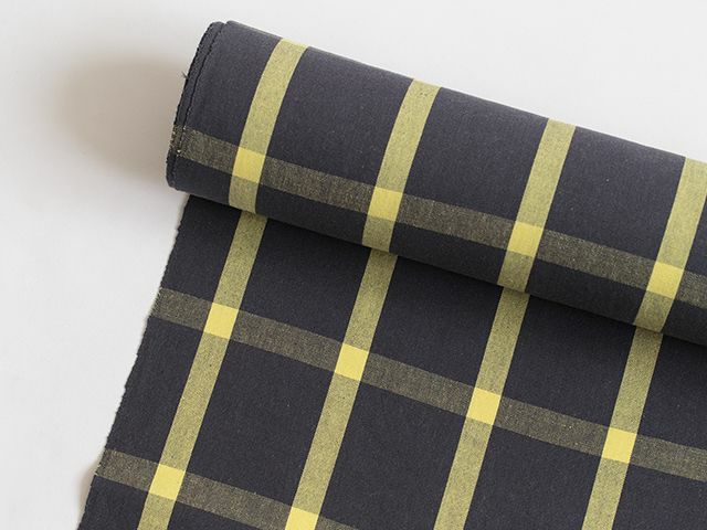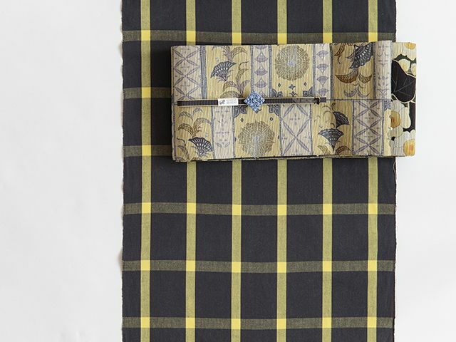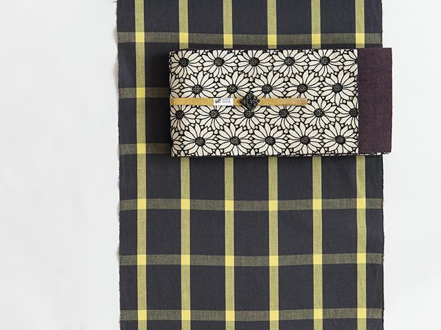 シックなグレイ地に、檸檬色の清々しい格子が新鮮。