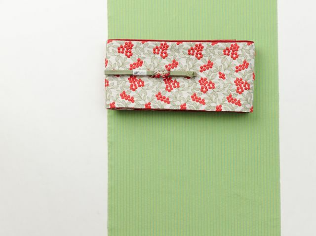 上質な生地感と繊細なストライプで、ネオンカラーでもカジュアルに寄りすぎないエレガントな着こなしが叶います。色はちょっぴり大胆ですが、柄がシンプルなのでコーディネートのしやすさは◎。帯や半衿の柄遊びも十分に楽しめる1着です。