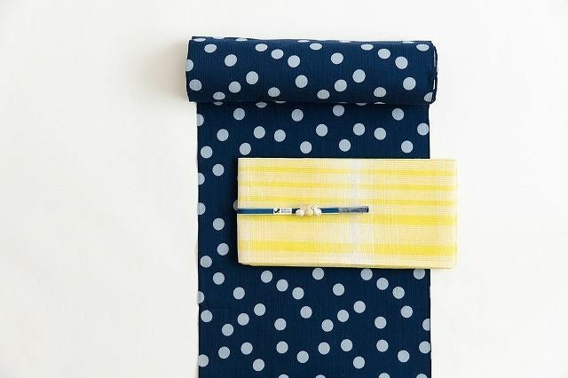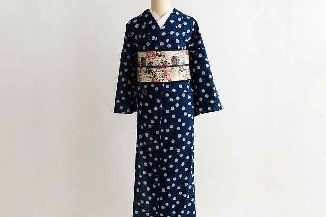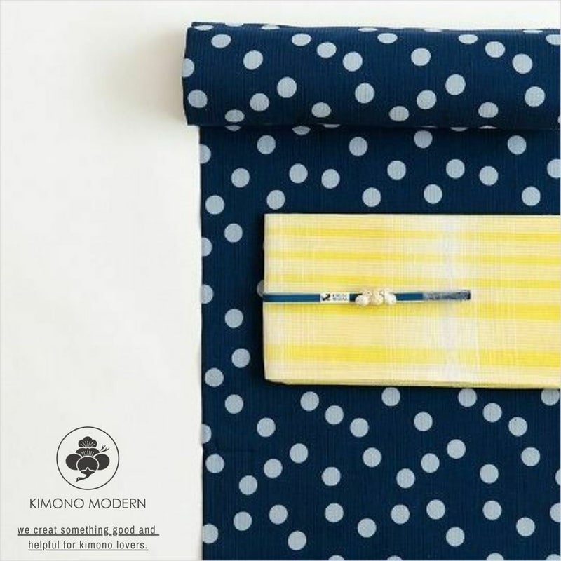 <阿波しじら>盛夏も着用OK!涼しいシボ感、夏キモノ- 水玉CANDY(綿100%)
