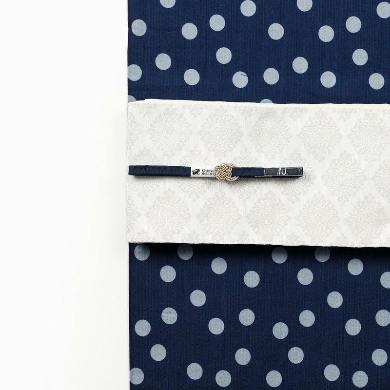 古きよき、伝統的な藍色に、ランダムに弾むように配置された水玉模様が、MODERNで洗練された印象の1着。