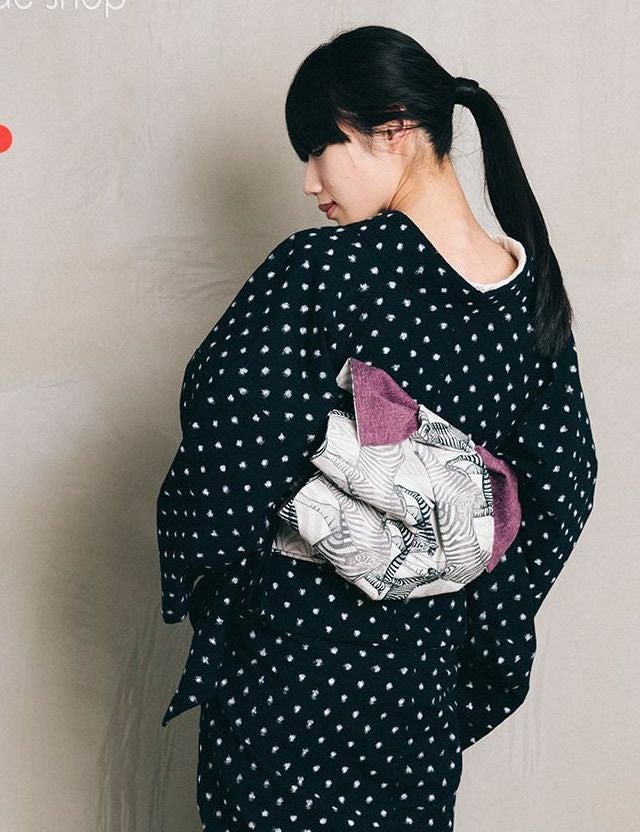 現代に生きる久留米絣の楽しさを100%かんじさせてくれるテキスタイルといえば、紺地に水玉模様のベーシックなスタイル。ほっこりした生地のぬくもりをそのままに、いつになっても色褪せることのない定番中の定番柄。