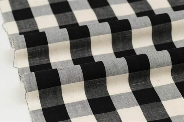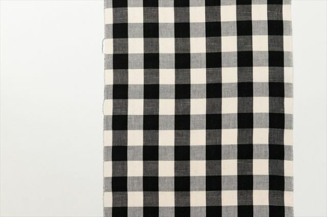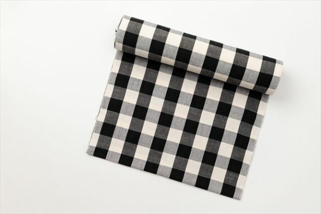 シンプルな白×黒のバイカラーで、大胆な格子柄を表現。モードに寄りすぎないカジュアルなスタイルを叶えてくれる伊勢木綿。