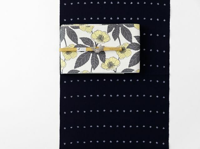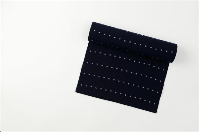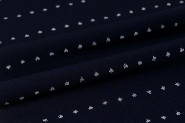 お行儀よく並んだドット柄が可愛らしいアクセントになっている久留米絣。ボーダーほど直線的にならない柔らかなラインが、コーディネートの洗練度を底上げし、1枚まとうだけで上級感のある装いを叶えてくれます。