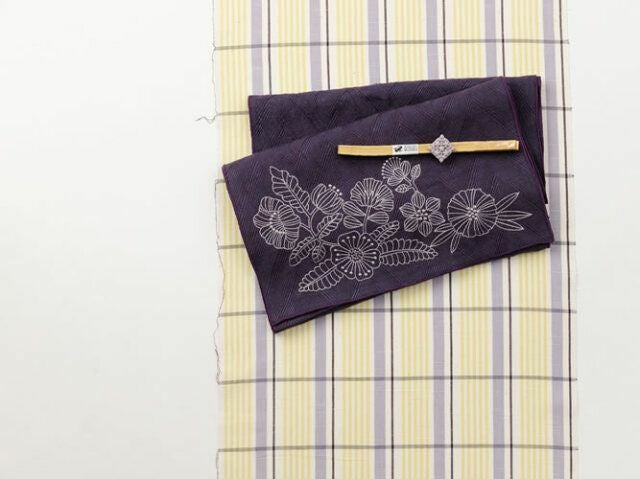 エネルギッシュなレモンイエローとシックなグレーをペアリングした伊勢木綿。レモンイエローのポップさをグレーが程よく中和させ、派手になりすぎない絶妙なチアフル感を表現。