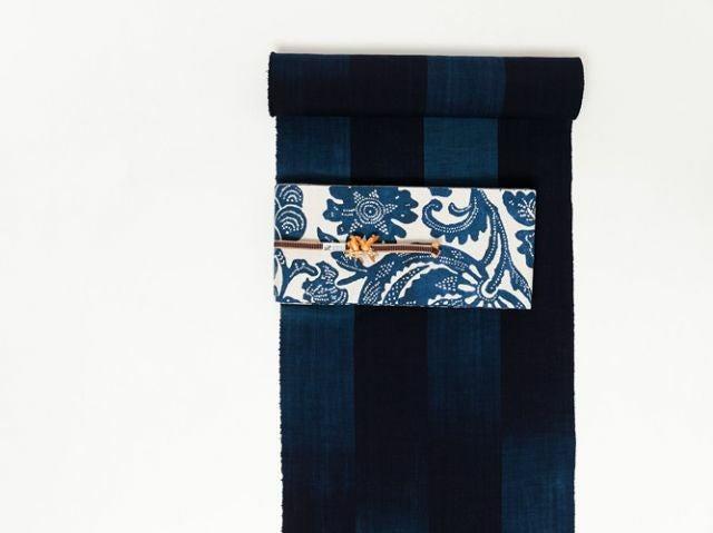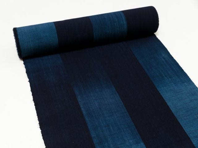 ざっくりと太めのストライプに、ゆらめくように大胆な濃淡。濃紺部分はしっかりとした色を残し、変わらぬ色合い。