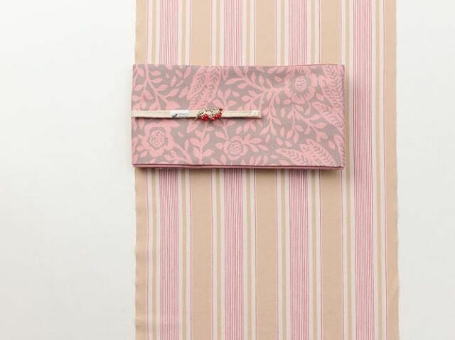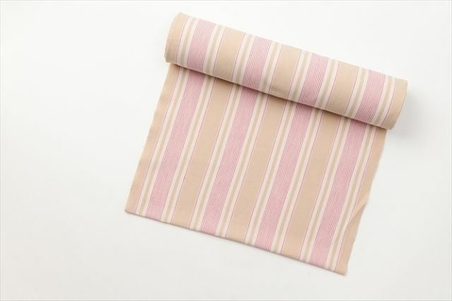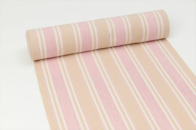 <伊勢木綿>pinkybeigeストライプ(綿100%)