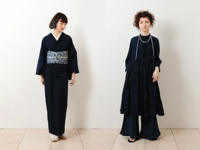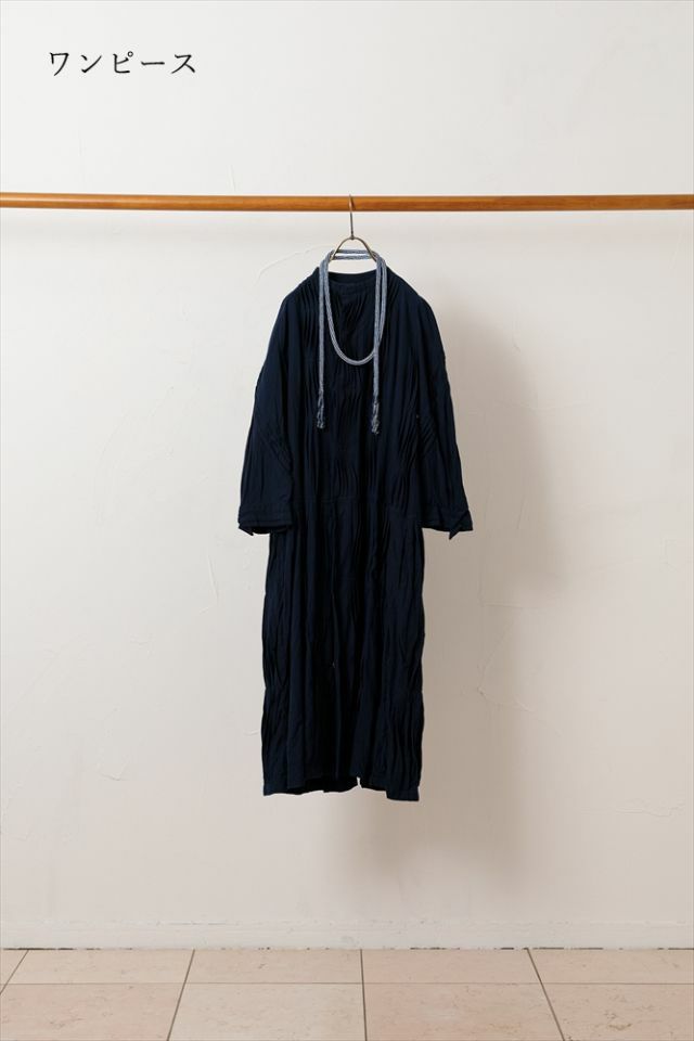 同一の生地で着物とワンピースの2パターンをご用意。和と洋をシームレスに楽しめる、新しい久留米絣をぜひご堪能ください。