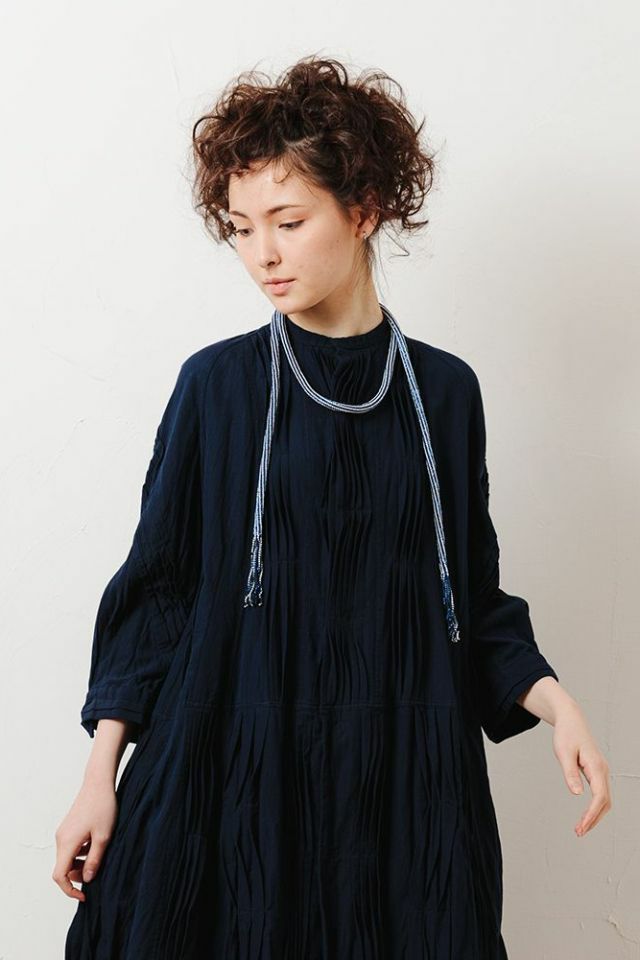 定番の藍で染められたクラシカルな久留米絣に、ピンタックプリーツを施してモダンに昇華。ベーシックと今っぽさが両立したシンプルなデザインは、コーディネートのしやすさも抜群です。