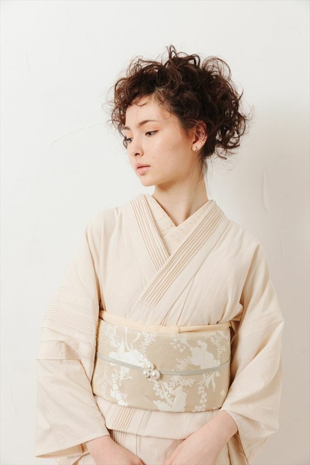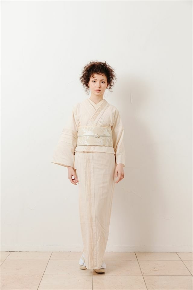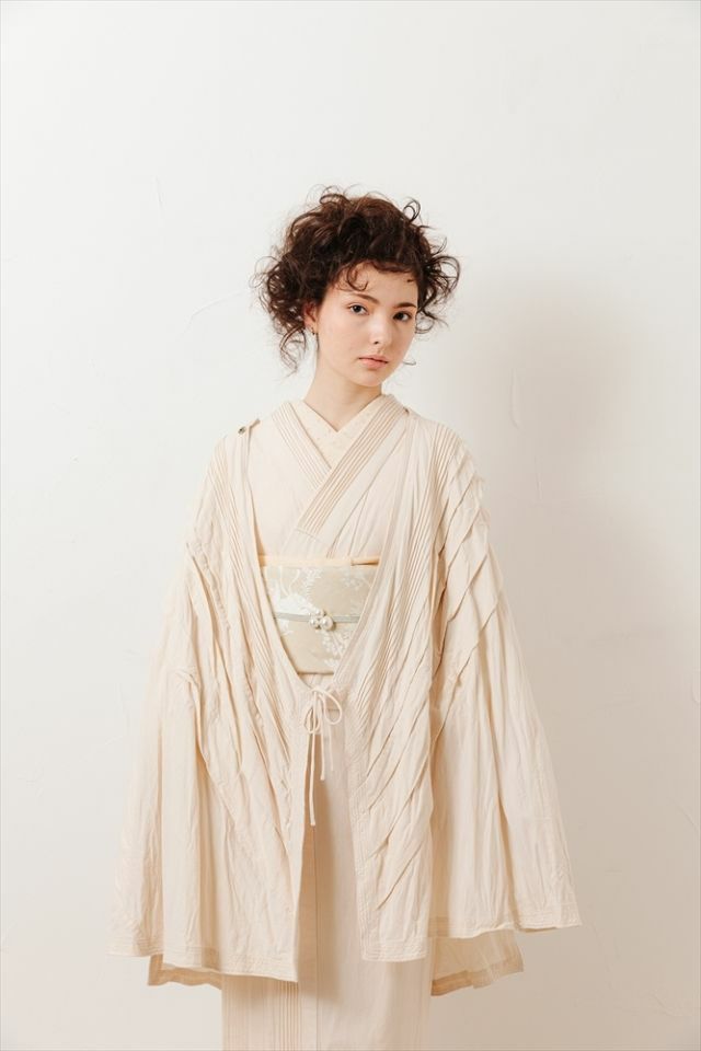 久留米絣のやわらかな風合いと、ほっこりとしたクリーム色が優しく調和。所々に施された幅の違う絶妙な間隔のピンタックプリーツが、ベーシックな装いにモダンなニュアンスを添えます。