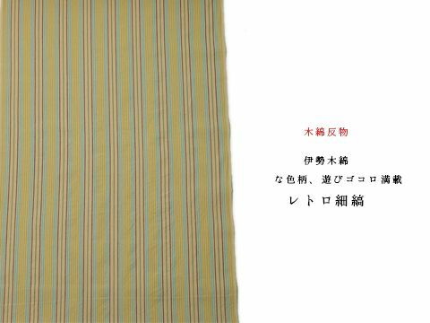 【木綿反物】伊勢木綿ー多彩な色柄、遊びゴコロ満載-レトロ細縞(・お仕立て代別・三重県伊勢市)