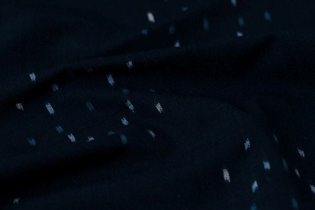 トラディショナルな紺色の中に輝く小さな世界と、それを紡ぐ弾けるようなの楽しさを、1着の着物にしてお届けいたします。