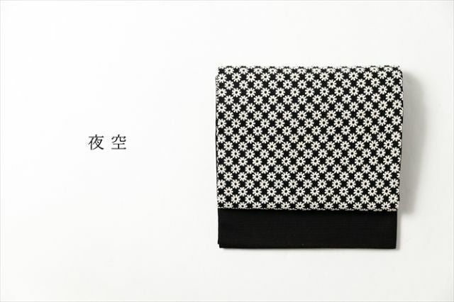 この帯の仕様は「開き名古屋=京名古屋」と呼ばれる形に仕上げています。袋帯(430cm)の短いバージョンと考えていただけるとよいかと思います(360cm)。