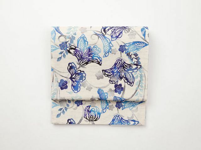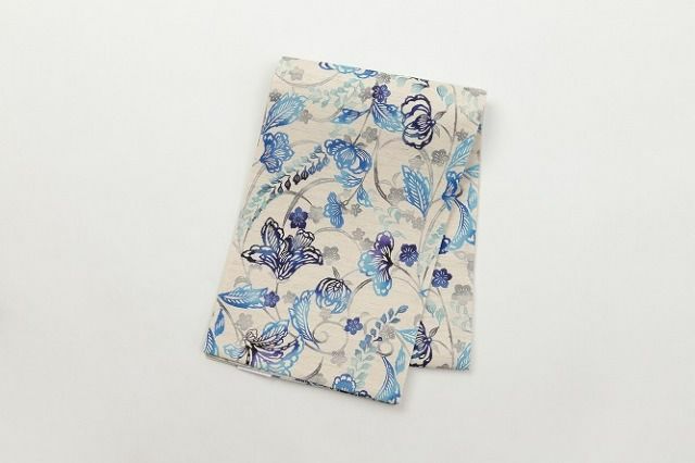 <召しませ花>麻の名古屋帯ー花そよぎ(表麻100%)