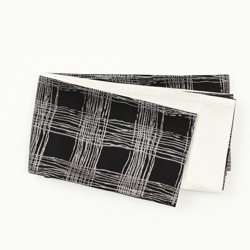 アーティスティックなよろけテイストのモノクロ格子は、コーデに奥行きとスパイシーさをプラス。真っ黒な迷路の中に、シルバーのゆるりとした一筋の光。クールなのに柔らかで、緩やかなのにキリリとして。相反するテイストが混在する個性的な1本。
