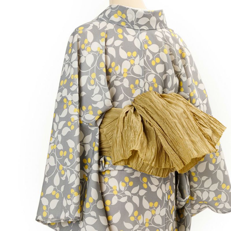この手の兵児帯は若い子だけの専売特許かな、というイメージですが、ちょっと落ち着いたくすみ系のニュアンスカラーだから手持ちの浴衣も子供っぽくならず華やかさをプラス。