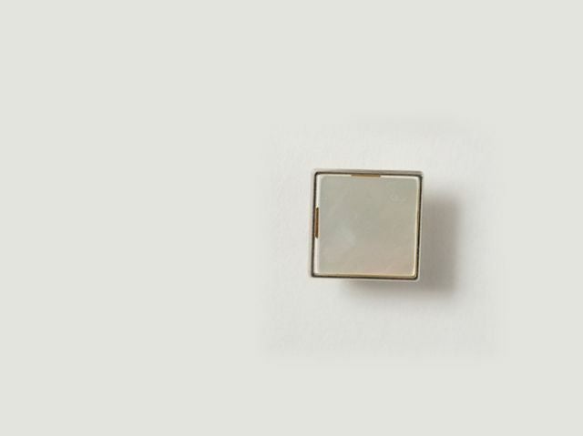 ホワイトのシェルをキリリとスクエアに仕立てた、ハンサムな帯留め。