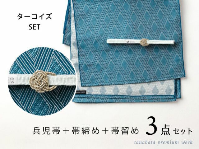 1.リバーシブル大人の兵児帯 ダイヤモンド 定価14080円 2.正絹帯締め 定価4290円 3.キラめくビーズの水引帯留め 定価4290円 ------------------------------------------ 総額 22660円相当