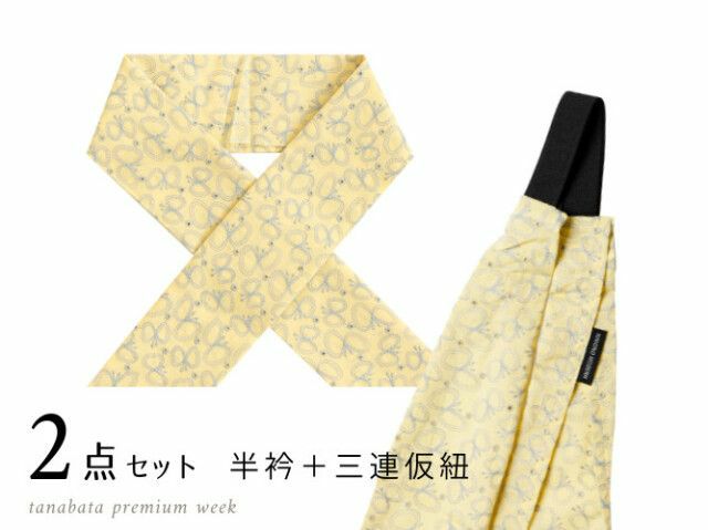 <3000円コモノSET>七夕 premium week -ときめくSETで恋せよ乙女--菜の花にとまれ(半衿+仮紐2点セット・7月下旬お届け)
