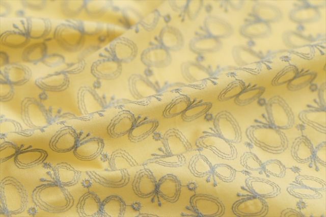 ぽかぽかと春の優しい日差しや、たんぽぽの花の色を思わせてくれる黄色。グレイッシュな刺繍とのコントラストが北欧っぽいニュアンス。