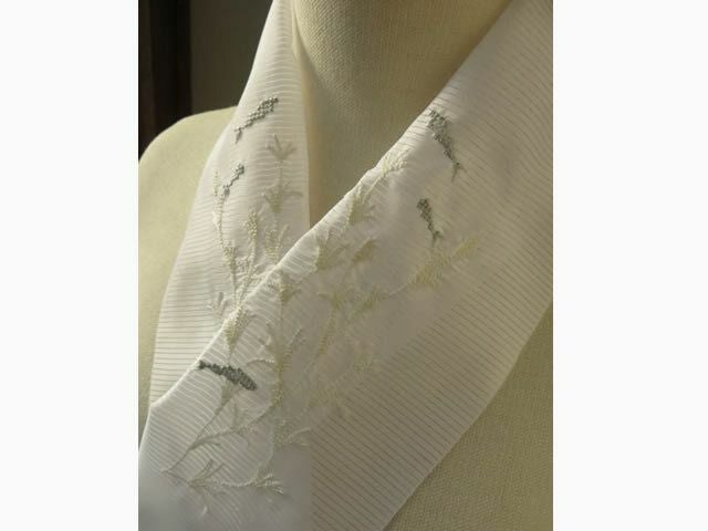 ポリの絽に刺繍をしています。夏中活躍する半衿。