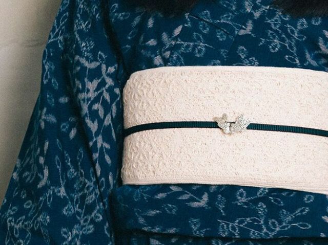三分紐といって幅約1cm、帯締めの金具に通せる太さの帯締めです。先端の房はあえて平に短めになっていて、帯留めが通りやすい仕様になっています。