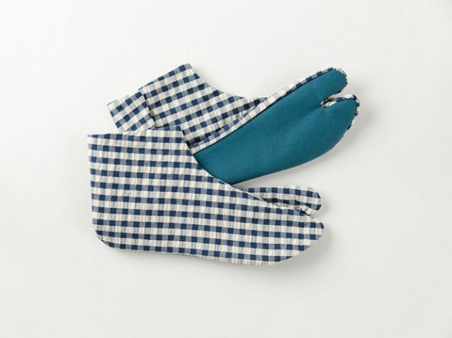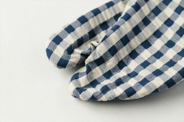見慣れたよくあるチェック柄も、ほこほことちょっぴり凹凸のある素材感だったり、子供っぽくならない絶妙な大きさのチェックだったり、そしてなによりカラフルな底裏だったり・・・と、いろんな要素がプラスに働くことで、とっても新鮮な足袋が生まれました。