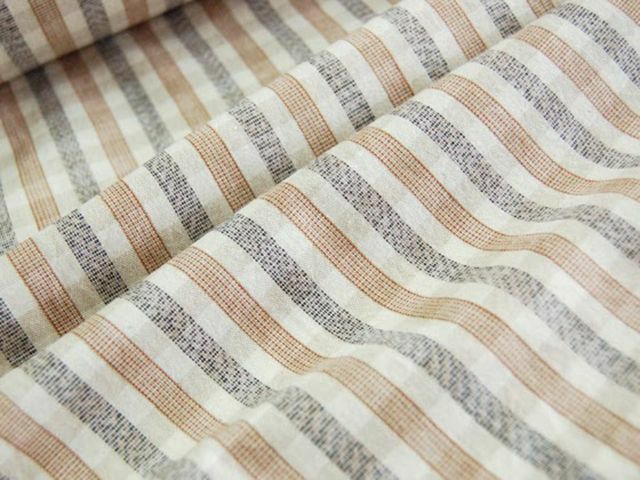 縦縞にはグレイと少し濃いめのサンドベージュ。